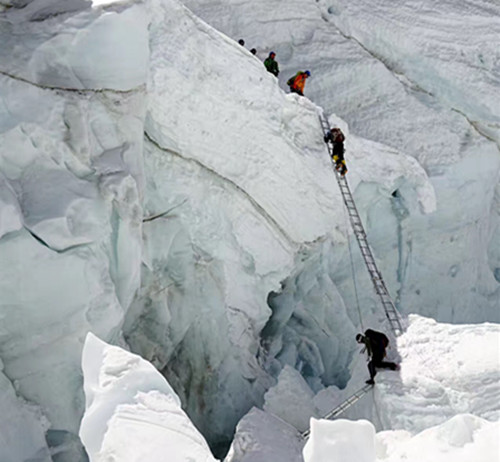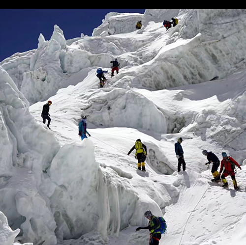 4月25日 早上九点准时出发前往昆布冰川进行正式训练,今天训练的强度不大,海拔就上升了200米,达到5500米高度就折返了,我们需要的是慢慢来--慢慢上升、慢慢适应、慢慢训练。