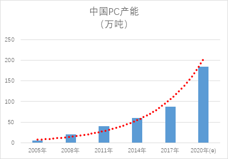 具体到中国大陆市场,中国2017年PC的表观消费量为170万吨,约合500亿人民币。消费量全球市场占比超过40%,可是这些材料只有不到5%是内资工厂生产的。
